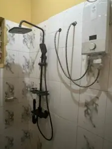 Luxurious Bathrooms: Indulge in our three-system shower with hot and cold water, complete with provided bathing essentials.